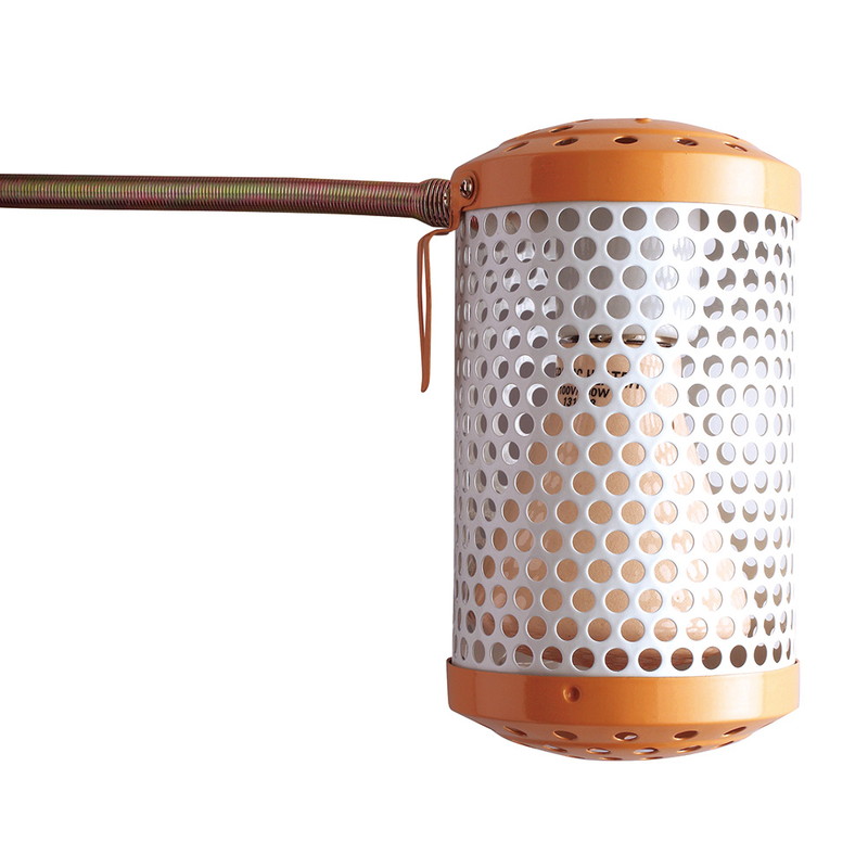 赤外線を放射してペットのカラダをじんわり暖める陶器製のヒーターです。 イタズラ防止のスチールカバー付。 光を出さないのでペットの生活リズムを崩しません。 陶器製なのでガラス製の電球タイプに比べて割れにくく、保温性に優れています。 カンタンに取り付けられるフック付きです。 ペットがあやまってコードをかじってしまわないように、保護コイルを取り付けました。