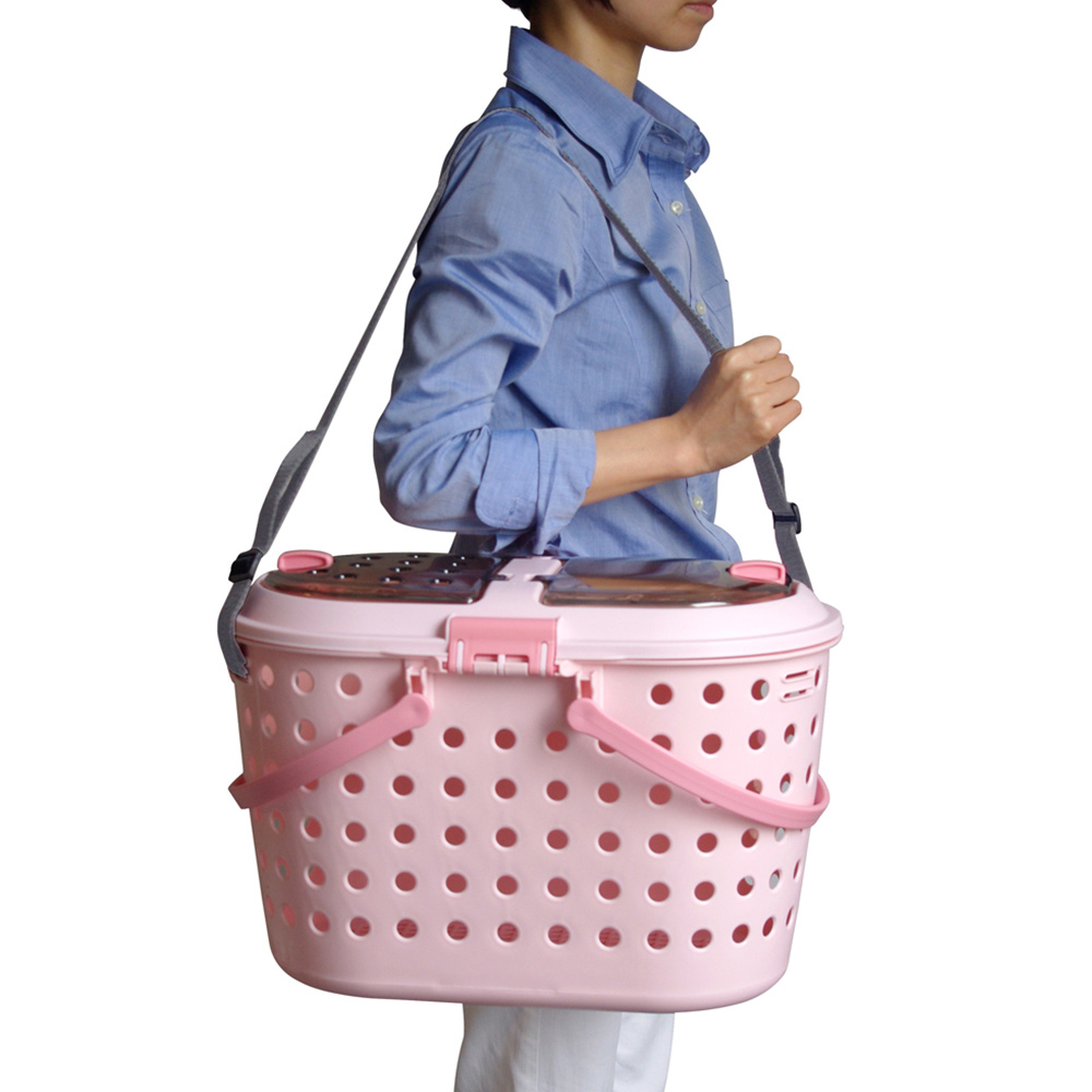 軽くて、通気性抜群。持ち運びに便利なショルダーベルト付き
