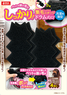 スポンジの目が細かく均一なので、洗濯槽内で浮遊するペットの細い毛や糸くずをキャッチして離しません。
