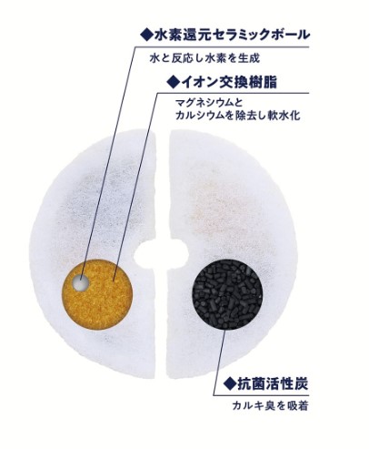 PP・抗菌活性炭・イオン交換樹脂・水素還元セラミックボール