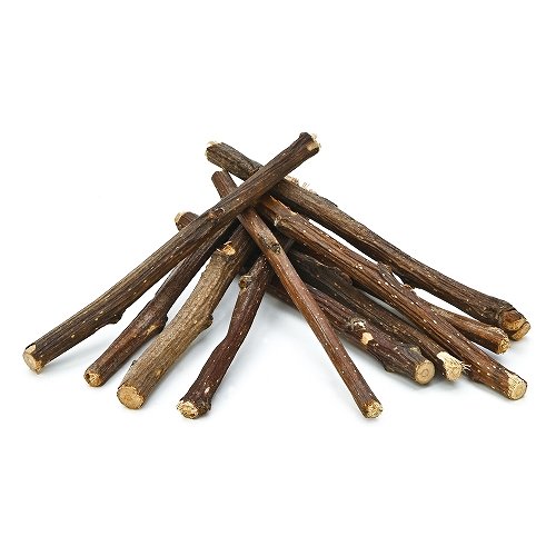 スリムなりんごの木の枝をペットのかじりやすいショートタイプにカットしました。