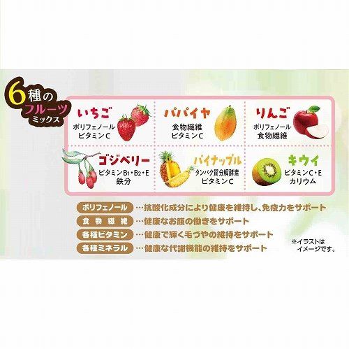 ・不足しがちなビタミン・ミネラル・カルシウムの補給に適しており、食物繊維・乳酸菌が健康なお腹の働きをサポートします。