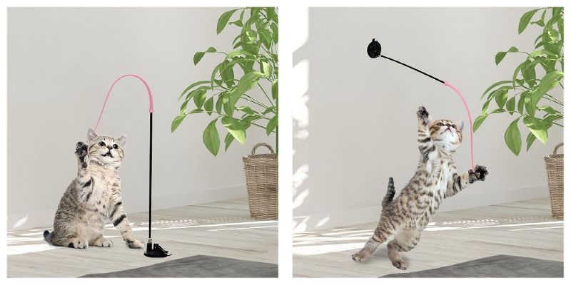 1.猫ちゃんの目の前でじゃらしを左右に動かして、一緒に遊ぶおもちゃであることを教えてください。(速く動かしたり止めたり、不規則にするとより効果的です。)