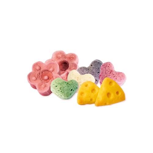 【3種入り】●ハートスナック(容量:3g) 4種の野菜味がおいしい、ハートの形のサクサク食感スナックです。●チーズ形クッキー(容量:8g) チーズとにんじんを練り込んで焼き上げたチーズの形のクッキーです。 ●はなびらクッキー(容量:3個) 食物繊維が豊富ないちごを練りこんで焼き上げたはなびらの形のクッキーです。