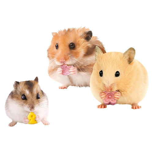 まるでスイーツ! ハムスターが大好きな素材を使ったかわいくて贅沢な3種のおやつセットです。 プチサイズなので、手に持って食べるかわいい仕草が楽しめます。