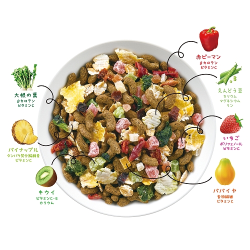 モルモットが体内で合成できないビタミンCを豊富に含む素材に加え、安定型ビタミンCを配合しました。