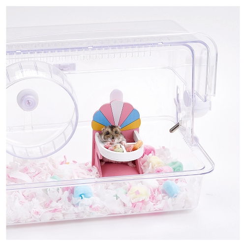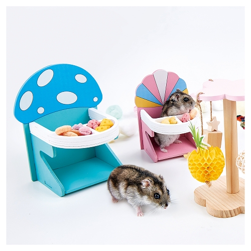 かわいい食事姿が楽しめる、ベビーチェア型の食器です。 テーブルに仕切りがあるので、フードやおやつを分けて入れられます。 天然木を使用しているのでハムスターがかじっても安心です。 ケージ内をかわいくデコレーションできます。