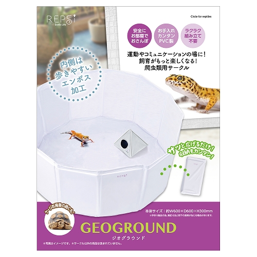 運動やコミュニケーションの場に! 飼育がもっと楽しくなる! 爬虫類用サークル ・汚れがつきにくく、ふき取りやすいPVC素材を使用しています。 ・内側の生地にはすべりにくく歩きやすいエンボス加工を施しています。 ・使わない時は、簡単にたたんで収納することができます。 ・ミルワームなどの生餌を放すと、捕食シーン楽しめます。 ※コオロギなどは本品を乗り越える場合がありますのでご注意ください。