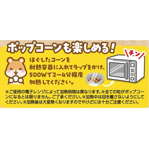 小動物が大好きな適度なかたさのコーンはかじり木の代わりになり、 かじることで歯の伸びすぎを防止します。食べやすいショートタイプ。 ほぐしたコーンをレンジで加熱すると、ポップコーンとして与えることもできます。
