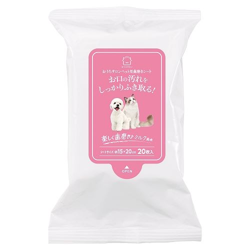 お口の汚れをしっかり拭き取るペット用歯磨きシートです。毎日の歯磨き習慣でお口を清潔に!●指に巻きやすい大判シート(約15×20cm)●ペットが大好きなミルク風味で毎日楽しく歯磨き♪●使い捨てだから衛生的 ●ノンパラベン