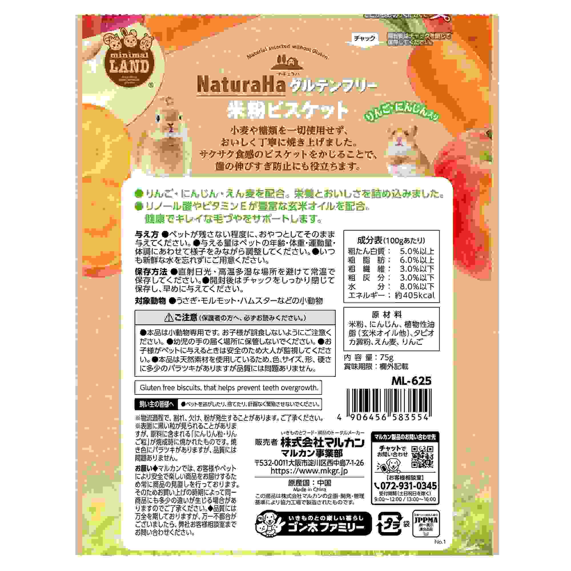 ミニマルランド ナチュラハ グルテンフリー 米粉ビスケット りんご・にんじん入り 75g
