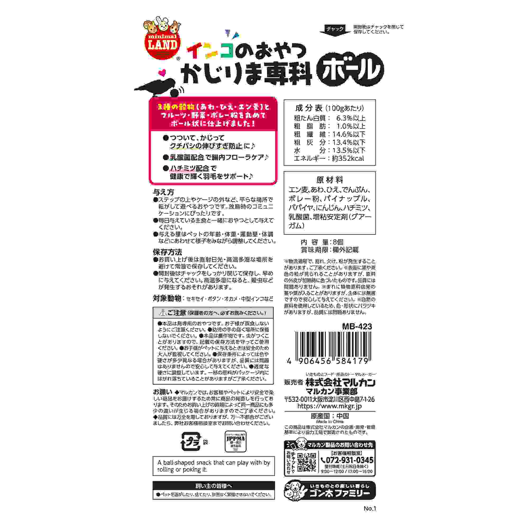 ミニマルランド インコのおやつ かじりま専科 ボール 8個