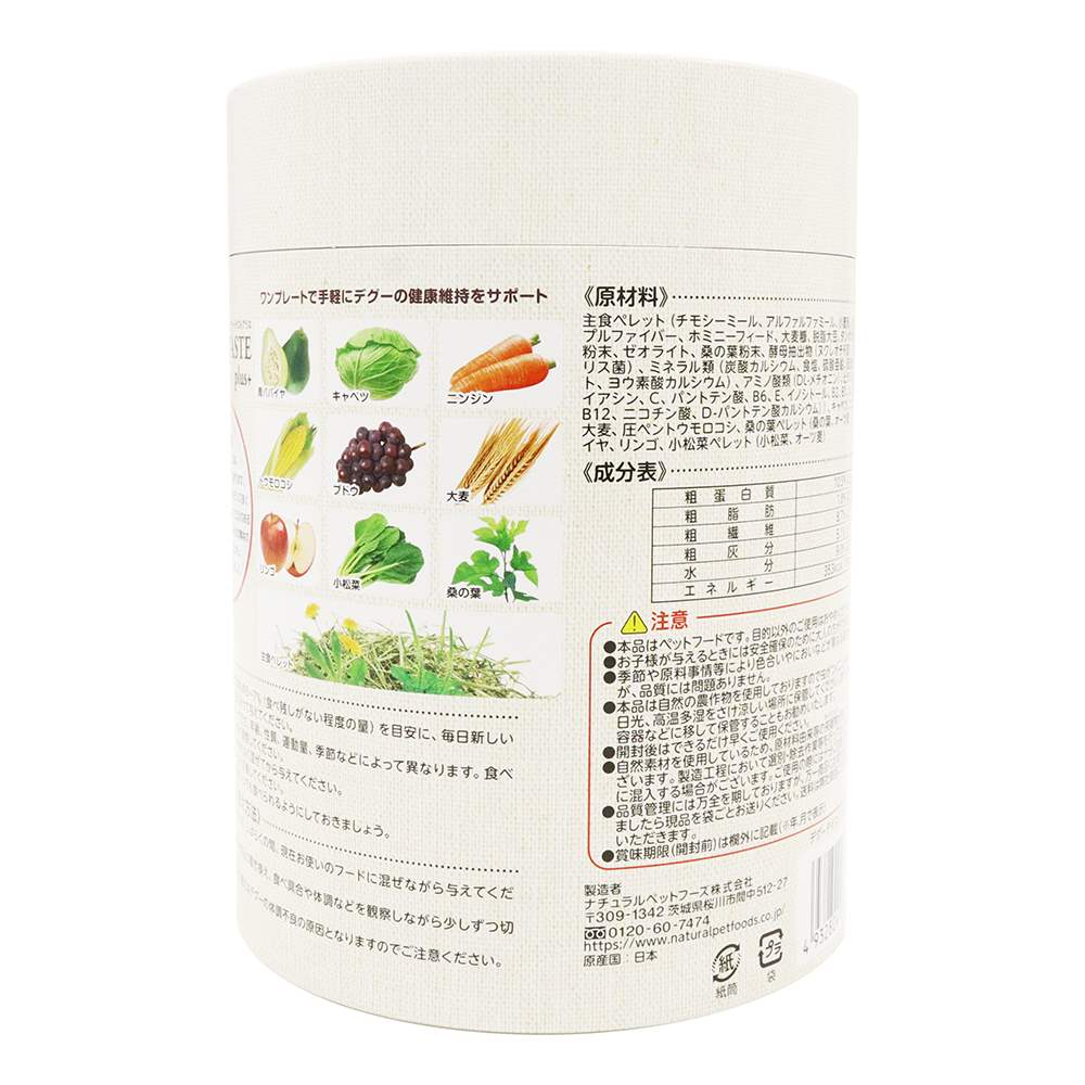 乳酸菌配合主食ペレットでおなかサポート!酵素を豊富に含む青パパイヤ入りで消化サポート!天然素材!小松菜・桑の葉ペレット入りで手軽に栄養補給!それぞれの素材のおいしさを味わいながら毎日の食事をもっと楽しく。保存にも便利でエコな紙筒パッケージ!