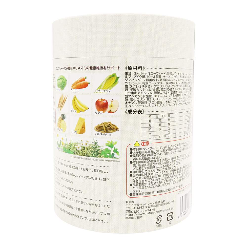 乳酸菌配合主食ペレットでおなかサポート!天然素材そのまま!乾燥ミルワーム入りでタンパク質補給!おいしいナチュラルチーズ入りでカルシウム補給!それぞれの素材のおいしさを味わいながら毎日の食事をもっと楽しく。保存にも便利でエコな紙筒パッケージ!