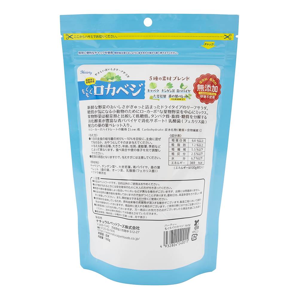 糖質が気になる小動物のためにローカーボ※な葉物野菜を中心にミックス。葉物野菜は根菜類と比較して低糖質!タンパク質・脂質・糖質を分解する消化酵素が豊富な青パパイヤで消化サポート!乳酸菌(フェカリス菌)配合の桑の葉ペレット入り。保存料・着色料無添加、砂糖不使用。※ローカーボハイドレートの略称【Low:低 Carbohydrate:炭水化物(糖質+食物繊維)】