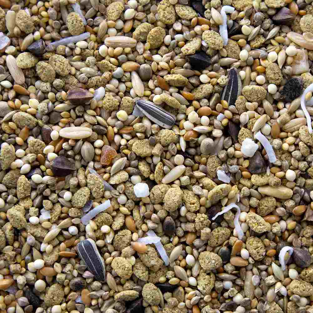 基本のシードミックスとペレットフード、フルーツ、ナッツをブレンド。