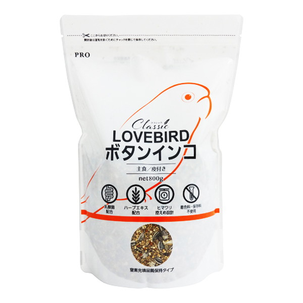 ボタンインコが大好きなシードを中心としたブレンドにハチミツ、乳酸菌、オリゴ糖、カルシウムをプラス!ボタンインコのための健康的でおいしい食事です。天然のローズマリーエキス配合。さわやかなハーブの香りで小鳥もリラックス。おやつやフォージングによるカロリー過多に配慮したヒマワリ控えめ設計。