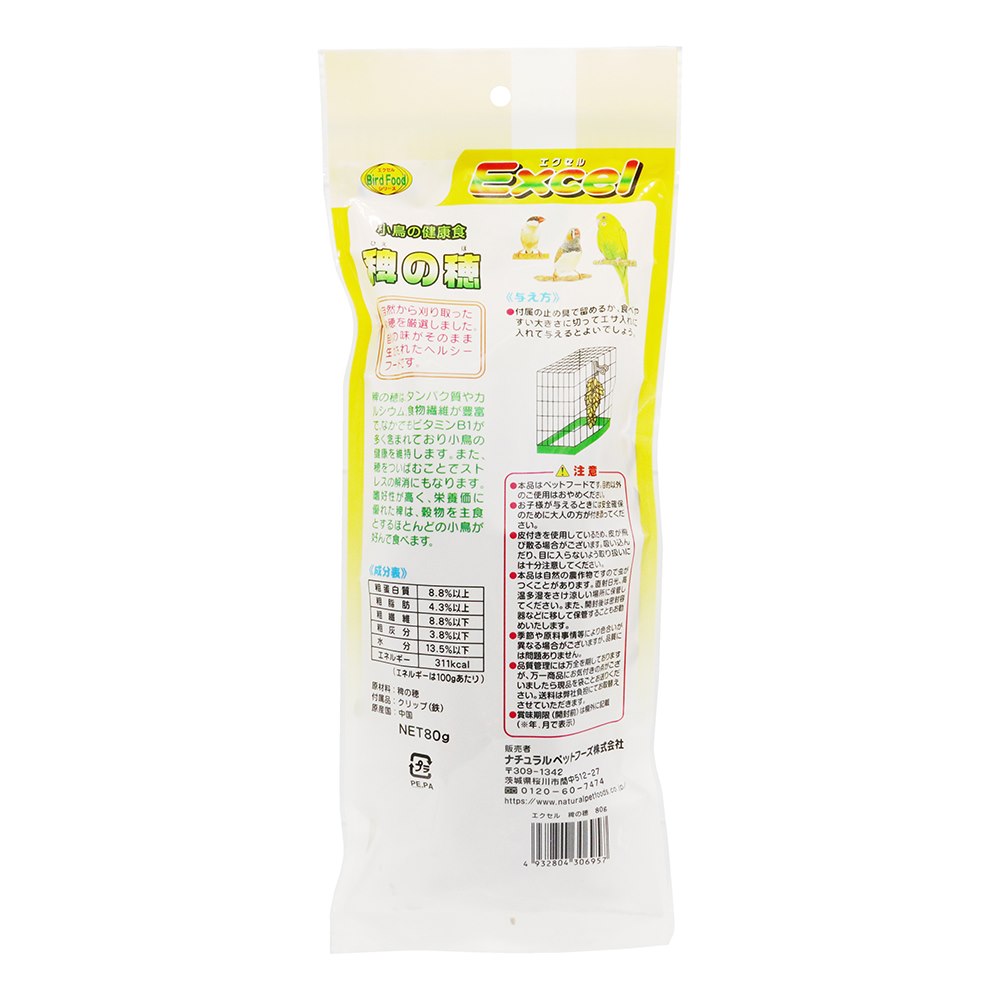 タンパク質、カルシウム、食物繊維が豊富で、なかでもビタミンB1がたっぷり!嗜好性が高く、栄養価にも優れています。穂をついばむことでストレスの解消にもなり、穀物を主食とするほとんどの小鳥が好んで食べます。