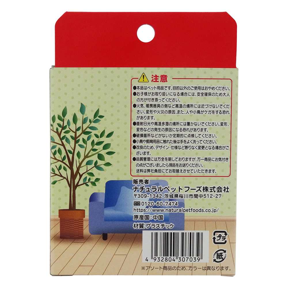 ●本品はペット用品です。目的以外のご使用はおやめください。●お子様がお取り扱いになる場合には、安全確保のため大人が付き添ってください。●火気、暖房器具の側など高温の場所には近づけないでください。変形や火災の原因、また、人やペットがケガをする恐れがあります。●小鳥や飼育用品に触れた後は手をよく洗って下さい。●改良のため、デザイン・仕様など断りなく変更となる場合がございます。●品質管理には万全を期しておりますが、万一商品にお気づきの点がございましたら現品をお送りください。送料は弊社負担にてお取替えさせていただきます。