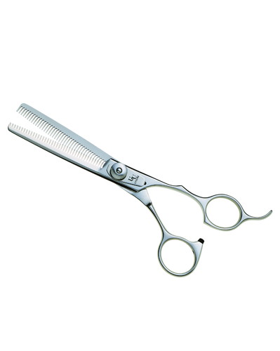 段を付けず、カットラインが入らない画期的なスキバサミです。特に顔の表情をつくる際に重宝するシザーズです。