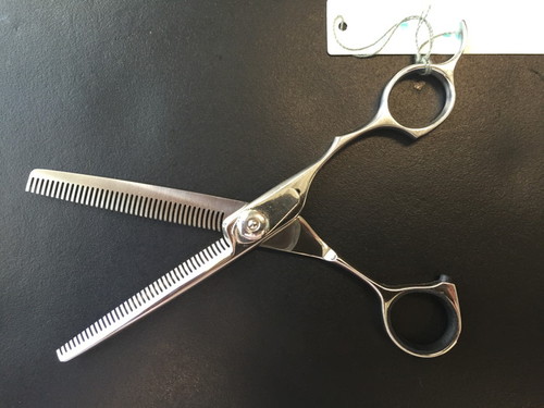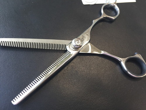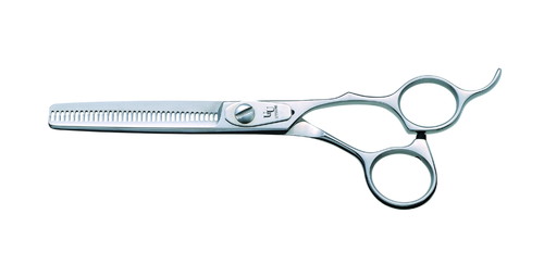 段を付けず、カットラインが入らない画期的なスキバサミです。特に顔の表情をつくる際に重宝するシザーズです。