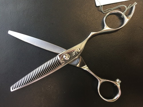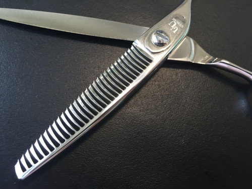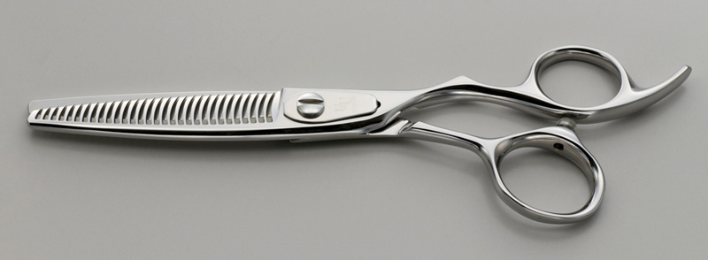 トリマーさんの手に最も馴染むのが、この3Dハンドル。なぜなら人間の美容師さんよりもトリマーさんの方がシザーズを立体的に持つためです。平面的なハンドルでは痛みや不自由を感じやすいのに対し、このハンドルは優しく包み込んでくれます。