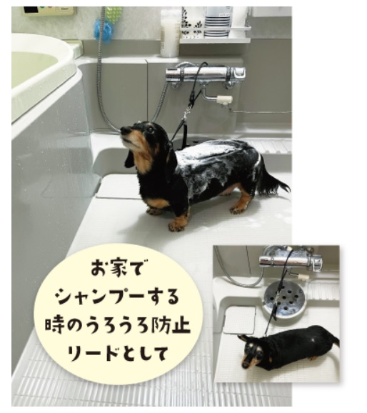 シャンプー中、ドッグバスの中でペットが動き回ったり飛び出したりするのを防ぎます。※このリードはペットバス専用です。使用後は必ず取り外しよく乾かせてください。金属部分を濡れたまま放置しますと錆びます。また、浴槽に錆び移りする恐れがあります。本リードを使用中はペットから目を離さないでください。