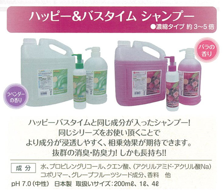 ハッピーバスタイム入浴剤と同じ成分が入ったシャンプー!抜群の消臭、防臭力です。
