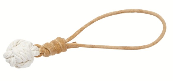 ペットと環境にやさしい製法、植物タンニンなめしで作られたレザーとコットンを編み込んだ犬用トイ。愛犬とオーナーの引っ張り遊びに最適です。