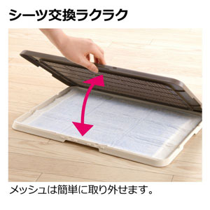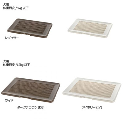 【お掃除簡単フラットトレー ワイド】カラー:ダークブラウン (DB)/アイボリー(IV)犬用体重目安/12kg以下サイズ/62.9×48×1.9H(cm)製品重量/1.2kg材質/ 本体・メッシュ:ポリプロピレン ゴム脚:ポリウレタン対応シーツサイズ/ワイドシーツ