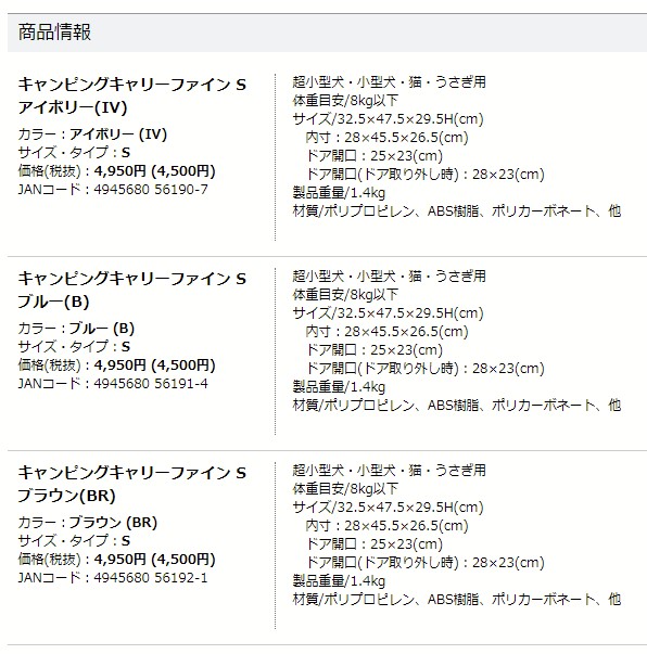 キャンピング キャリー ファイン S/M 各色 ( Sサイズ アイボリー )