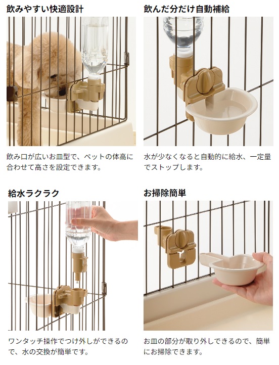 ケージ・サークルに取り付けて使用するお皿型の給水器です。