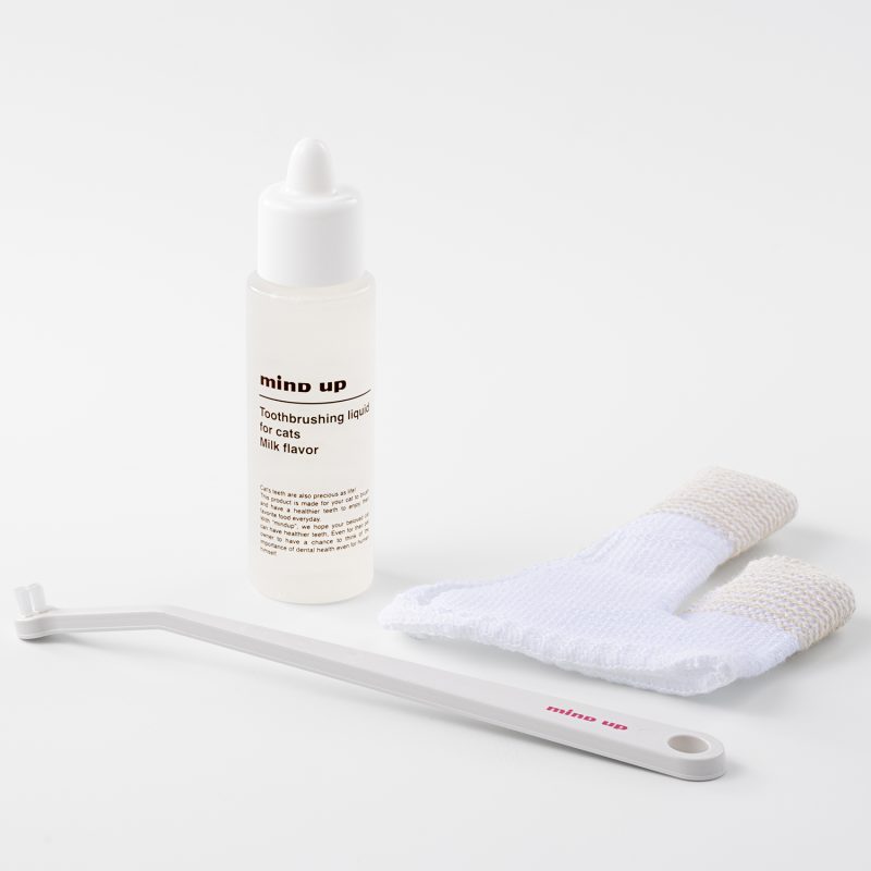 ネコちゃんの歯みがきの習慣づけに最適な液状はみがき、ゆび歯ぶらし、歯ブラシ マイクロヘッドをセットにしました。