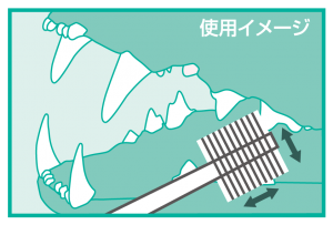 毛先を上手に使って、歯と歯ぐき、その境目を丁寧にブラッシングしてください。