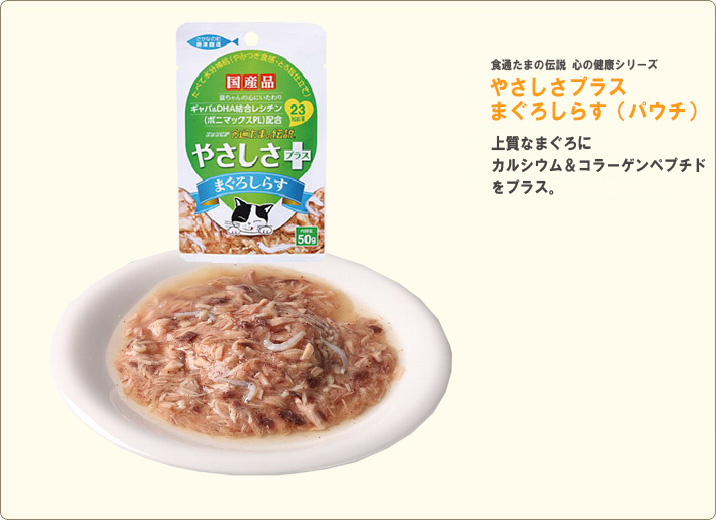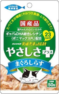 【原材料】 まぐろ、しらす、ツナエキス、食物繊維(オオバコ)、かつお節、 かつお骨粉末、コラーゲンペプチド、オリゴ糖、ギャバ、 DHA結合レシチン、増粘剤(キサンタンガム)、ビタミンE