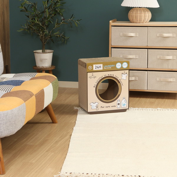 ポップで可愛らしいランドリー型の猫用爪とぎ。
