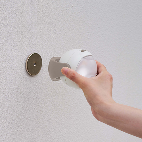 スリムなかたちで使いやすい、電池式のセンサーライト。
