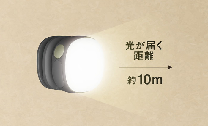 しっかり明るい 明るさは50ルーメン(強)、20ルーメン(弱)、点滅の切り替えが可能です。