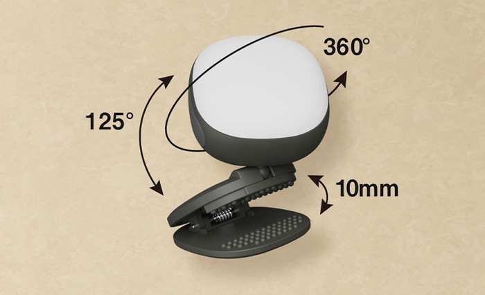 ライト角度・自由自在 しっかりつかめるクリップ。すべり止めは丸い形状で、衣服を痛めません。