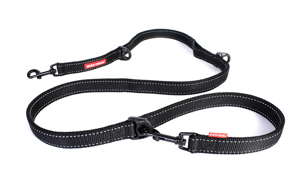 1本で150/100cmのリードや、たすき掛け、2頭引きや、長/短の仮の係留にも使えるリード。リード部分は2重になっており丈夫です。反射機能付。