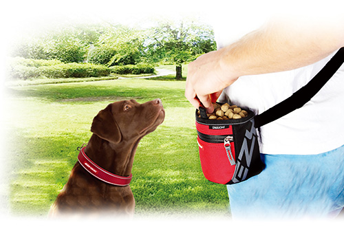トリーツを入れるメインバッグは手入れが容易、開閉は壊れにくいマグネット式。ベルトに付けたり、肩からたすき掛けができます。