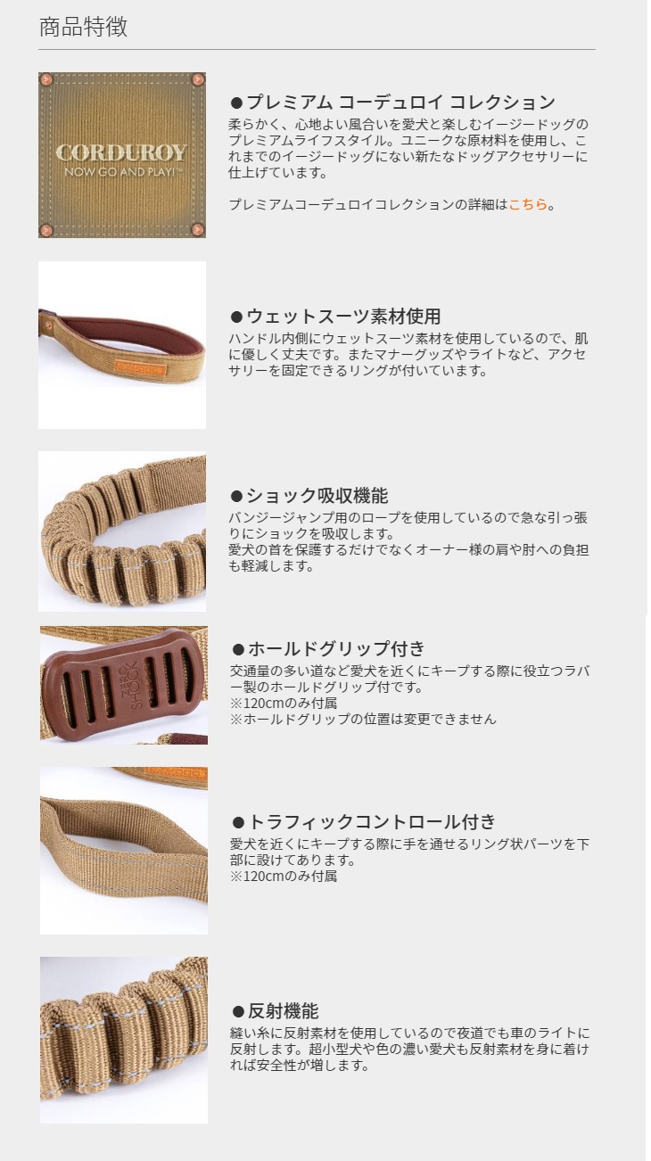 ショック吸収機能付きで愛犬の首やオーナー様への負担が軽減されるリード。