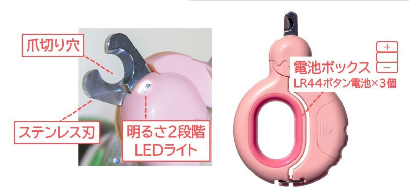 LEDで爪を明るく照らし安全にカット出来ます