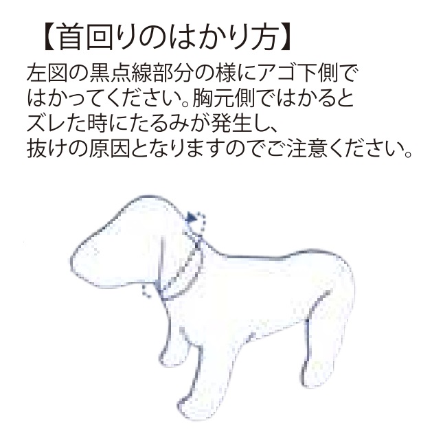 ワンちゃんのサイズに合った商品をお選びいただき、緩みがないよう調整してください。