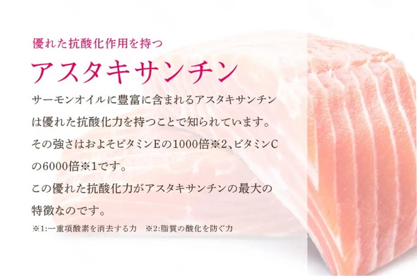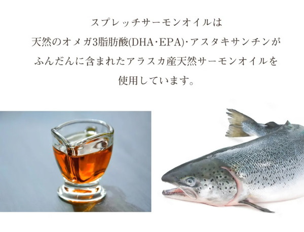 オメガ3脂肪酸(DHA、EPA)と優れた抗酸化作用があるアスタキサンチンを含む良質なサーモンオイル。