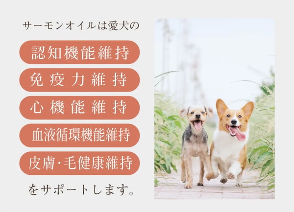 使いやすいスプレッチのMINIサイズ。毎日続ける、愛犬・愛猫のための健康新習慣。オメガ3脂肪酸(DHA、EPA)と優れた抗酸化作用があるアスタキサンチンを含む良質なサーモンオイル。愛犬・愛猫の【皮膚、毛艶】【心臓、血管、血液】【脳】の健康サポートに。■特徴■・天然アラスカ産サーモンを使用・アスタキサンチン、オメガ3(DHA・EPA)を含む良質なオイル・オイルの空気酸化、光による劣化を防ぐエアカット(特許出願中)ボトル・オイルが酸化しないから生臭くなりづらい・いつものごはんにかけるだけ!カンタン・手軽だから続けやすい・開封後も常温で保管可能■与え方■目安給与量を参考に1日、1回から数回に分けて与えてください。<1日あたりの給与量 (1本 / 150ml使いきるまでの目安日数)>超小型犬(5kg以下) ・・・ 小さじ 1/2杯(約2ヶ月)小型犬(5~10kg) ・・・ 小さじ 1/2~1杯(1ヶ月)中型犬(10~20kg) ・・・ 小さじ 1~2杯(2/3ヶ月)大型犬(20kg以上) ・・・ 小さじ 2~3杯(約半月)