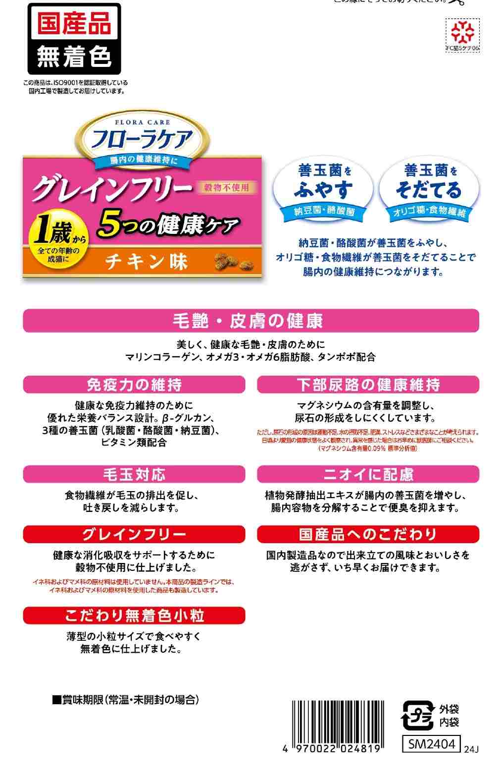 フローラケア猫 5つの健康ケア 毛艶皮膚 チキン味 600g