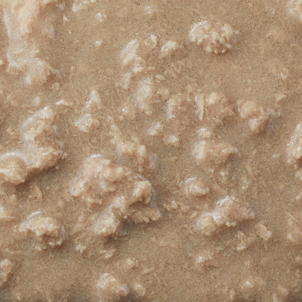肉本来の味を感じられるようササミをカットし、なめて食べられるとろみタイプに仕上げました。高齢期の健康に配慮して、グルコサミン・コンドロイチンを配合しています。