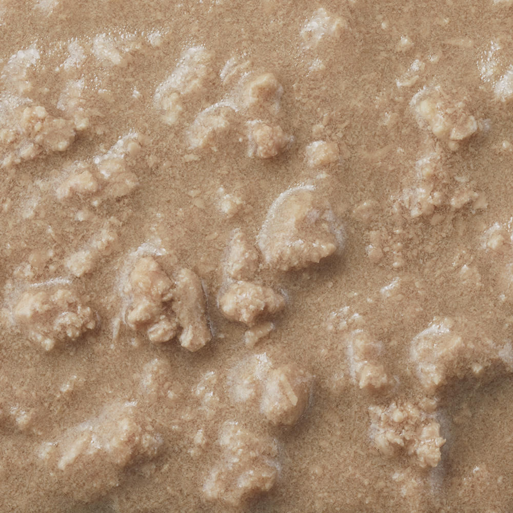 肉本来の味を感じられるようポークをカットし、なめて食べられるとろみタイプに仕上げました。高齢期の健康に配慮して、グルコサミン・コンドロイチンを配合しています。