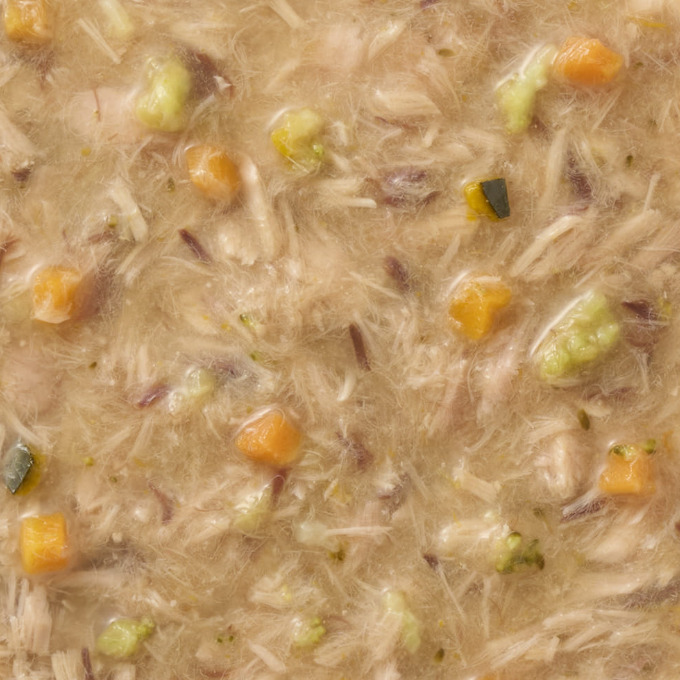 まぐろをフレーク状にほぐし、緑黄色野菜を加え、食べやすいとろみタイプに仕上げました。